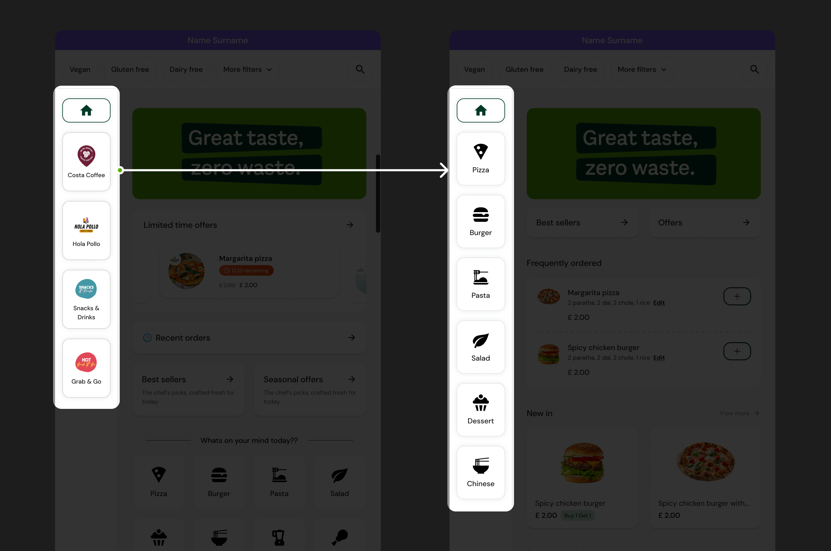 Once we realised that the users dont care about restaurants and we were sure that we could make this change we went ahead with it. The updated navigation lets the users know what all food types we serve which also helps in increasing discoveranility